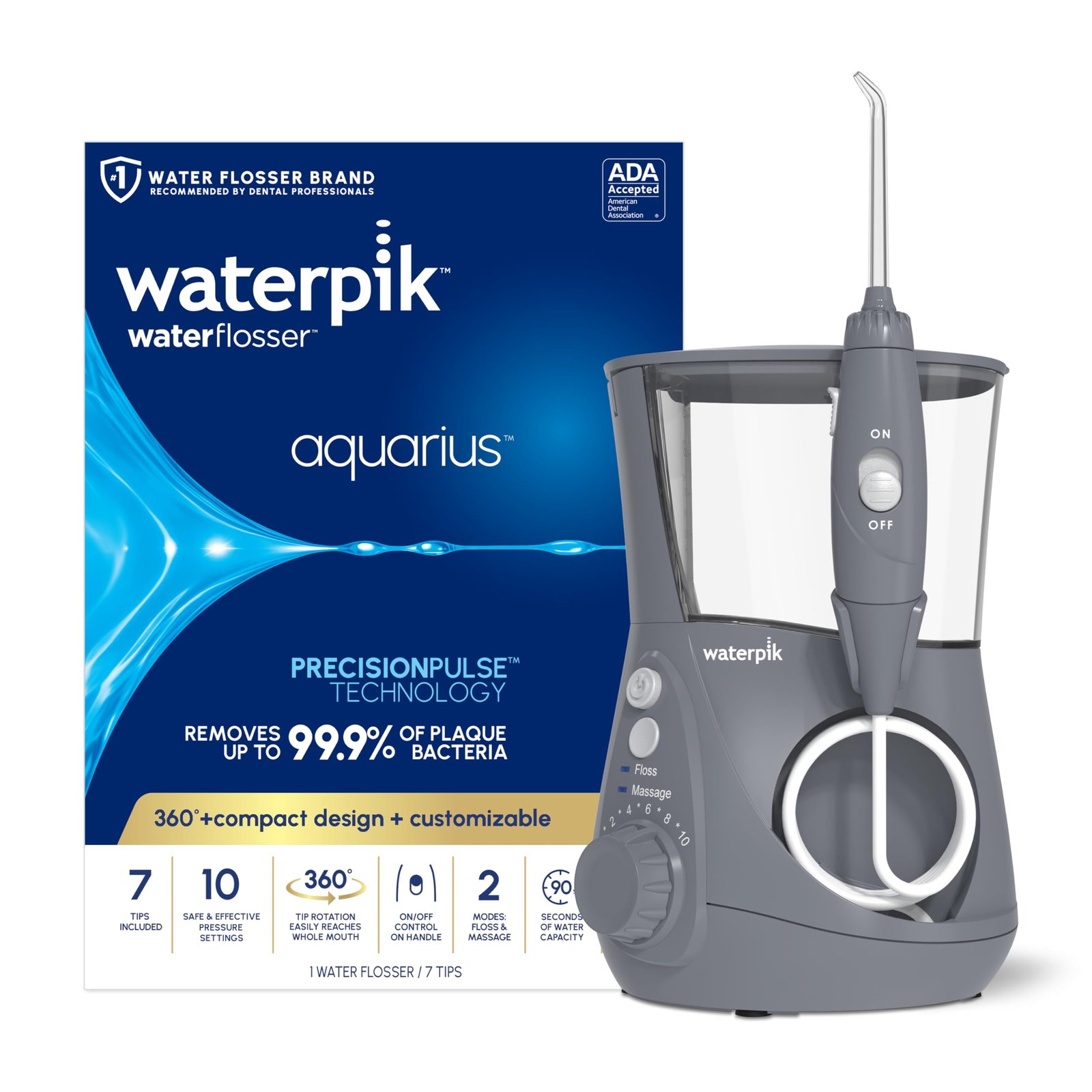 Waterpik Aquarius Water Flosser Professional For Teeth, Gums, Braces, Dental Care, Electric Power With 10 Settings, 7 Tips For Multiple Users And Needs, ADA Accepted, Gray WP-667, Packaging May Vary